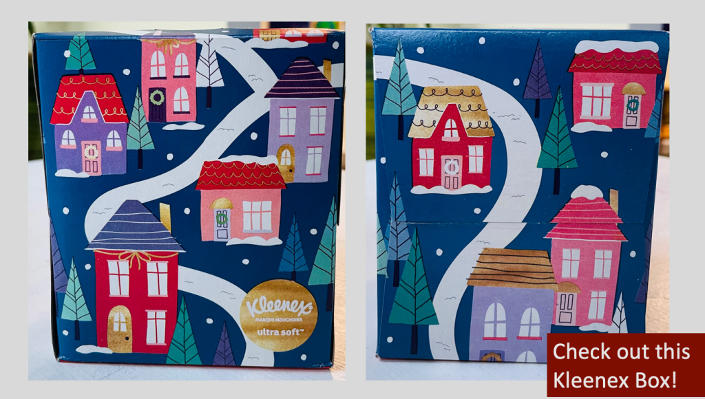 I soon learned that Kleenex, from multinational Kimberly-Clark, based in Irving, Texas, (valuation $44 billion), isn’t the only brand using charming and historic architecture to get us to shop. Check out the plastic bag and box below.