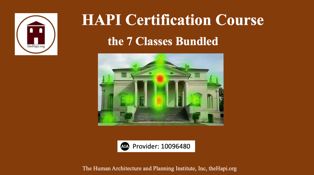 What is it? Seven half-hour presentations bridging the arts + sciences, revealing how biology and psychology shape our experience of the built environment – inside + out, far more than most realize. All online.